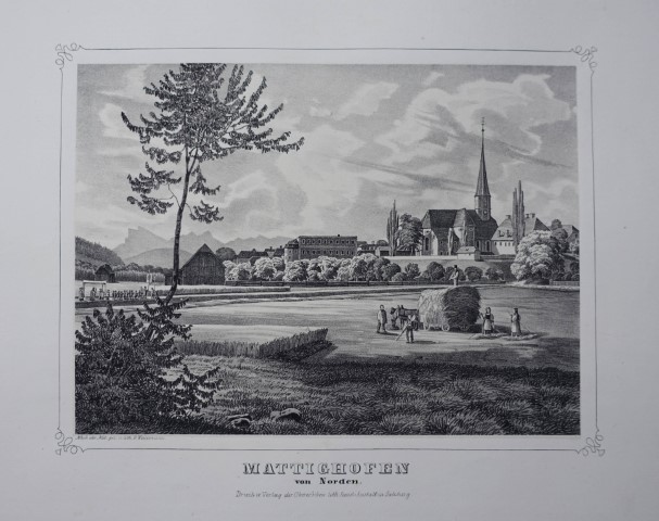 Nebehay-W. 135, III Abt. 3.Bd. 19.- Sehr selten, einzige gedruckte Ortsansicht ! Der Maler Georg Riezlmayr (Riezlmair) (1784-1852) war Schreib- und Zeichenlehrer in Kremsmünster. "Die Bedeutung Riezlmayr`s liegt darin, im Zeichnen und Malen der einzige Lehrer Stifters gewesen zu sein, der 1816-26 das Stiftsgymnasium Kremsmünster besuchte". (ÖBL).- (Traunviertel) |