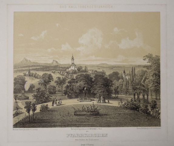 Ischl oberhalb der kleinen Schmolenau. Tonlithographie v. L. Libay aus Paterno "Große Serie der Ansichten und Landschaften aus Österreich" Wien um 1850, 32 x 42 cmNebehay-W. 476 / 13.- Seltene, großformatige Gesamtansicht.- Karl Ludwig Libay (* 13. Mai 1814 in Neusohl, 16. Jänner 1888 in Wien) studierte ab 1834 an der Wiener Akademie in der historischen Zeichenklasse von K. Gsellhofer, Johann M. Ender und Leopold Kupelwieser, sowie in der Landschaftsklasse von J. Mößmer. Seit 1841 widmete er sich der Landschaftsmalerei und suchte auf seinen Wanderungen zunächst rund um Wien die Motive, doch von 1844 an reiste er bereits oft nach Salzburg und seine Umgebung. 1848 arbeitete er erstmals in Ischl. (Salzkammergut) |